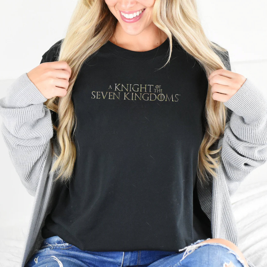 The A Knight Of The Seven Kingdoms Logo Movie Tee celebrates epic fantasy, chivalry, and Westerosi adventure. Made from soft, breathable fabric, it offers a comfortable classic fit for everyday wear. Perfect for fantasy fans and collectors, this tee features medieval-inspired graphics with durable, high-quality printing.