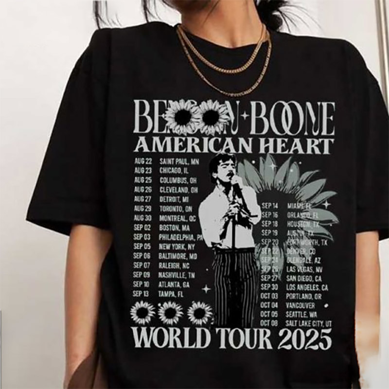 Music has the power to bring people together, and what better way to express your love for music than through a custom-designed t-shirt? Whether you’re a fan of classic rock, pop, hip-hop, or indie music, our music-themed Benson Boone American Heart World Tour 2025 Dates T-Shirts are the perfect way to showcase your passion.