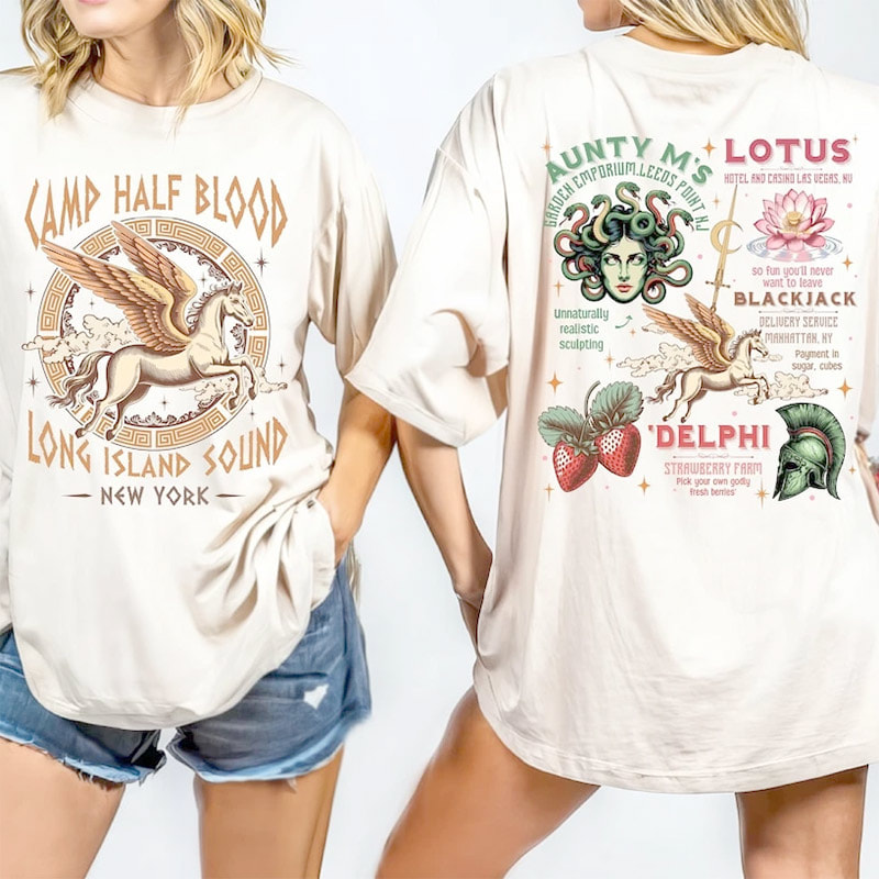 At PersonalizedShirts.net, we bring the silver screen to your wardrobe with our exclusive line of Camp Half Blood Percy Jackson And Olympians 2-sided Shirt. Whether you’re a die-hard fan of timeless classics, cult favorites, or the latest blockbusters, we have a shirt that speaks your cinematic language.