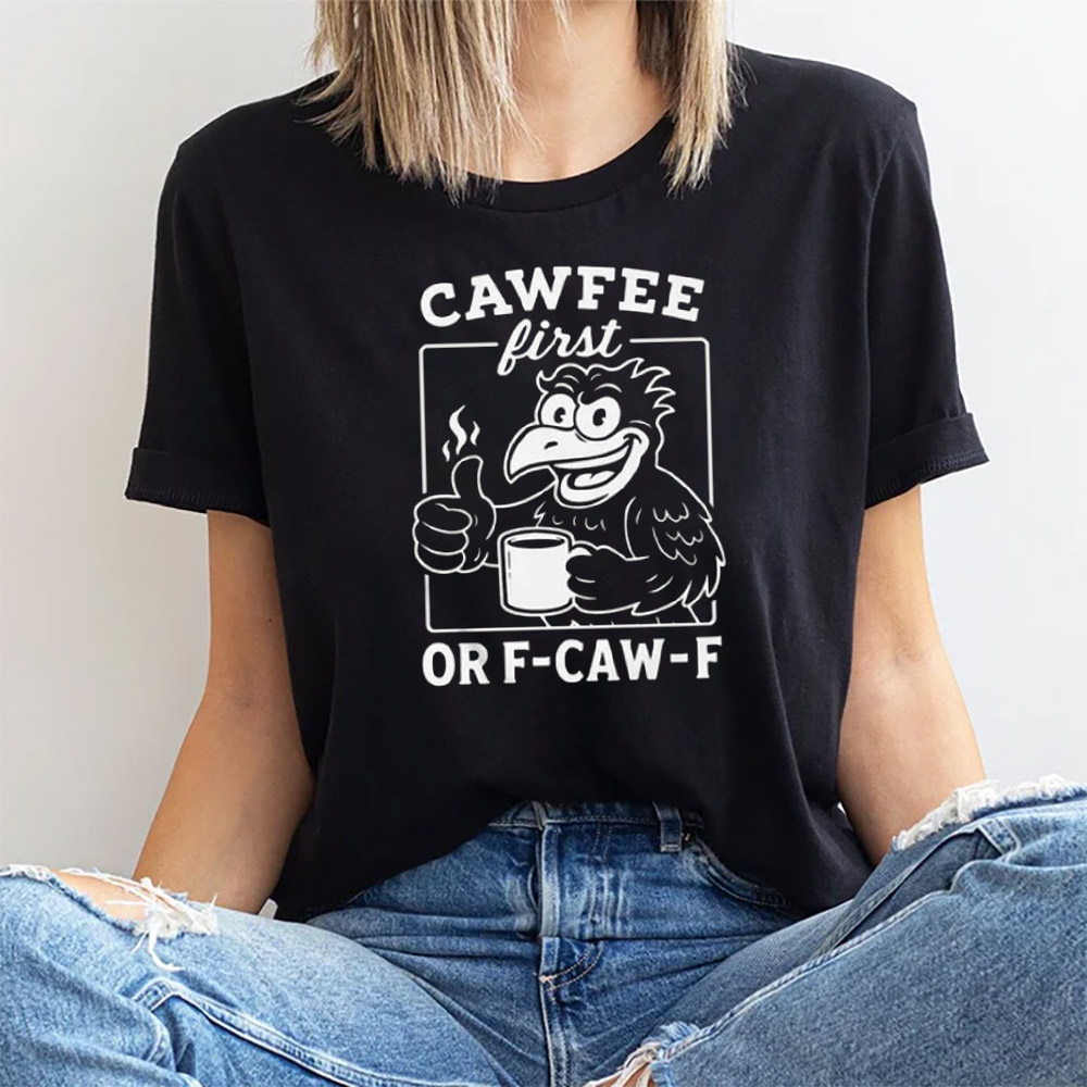 The secret behind a CAWFEE First Or F-CAW-F Funny Coffee Lover Shirt is simple: it captures the moment. It’s about being part of something bigger, whether it’s a pop culture reference, a viral meme, or a bold graphic that speaks to a shared experience.