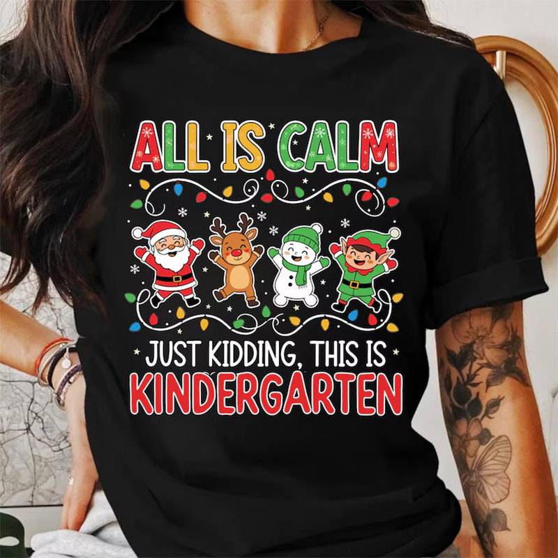 Celebrate the magic of the holidays with our Kindergarten Christmas All Is Calm Just Kidding Shirt, where festive cheer meets cozy comfort. Crafted from premium cotton and proudly printed in the USA, this shirt captures the warmth and wonder of the season. Whether you’re attending a holiday party, trimming the tree, or spreading joy with family, this festive Christmas shirt adds sparkle to every moment. Perfect for gifting or personal wear, it’s your go-to holiday essential—because Christmas isn’t just a day, it’s a feeling you can wear.
