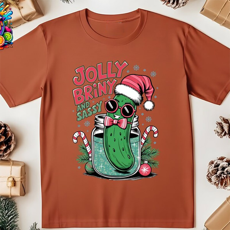 Looking for the perfect blend of comfort, color, and self-expression? Welcome to the next level of wardrobe essentials: Funny Christmas Pickle Jolly Briny And Sassy Comfort Colors Tee from PersonalizedShirts.net — where your T-shirt isn’t just a piece of fabric, but a canvas for identity.