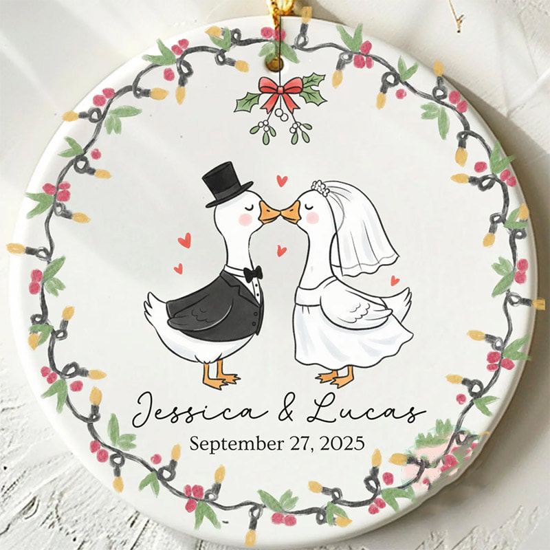 Celebrate the Season with USA-Personalized First Christmas Married Goose Kissing Ornament That Are as Unique as You
