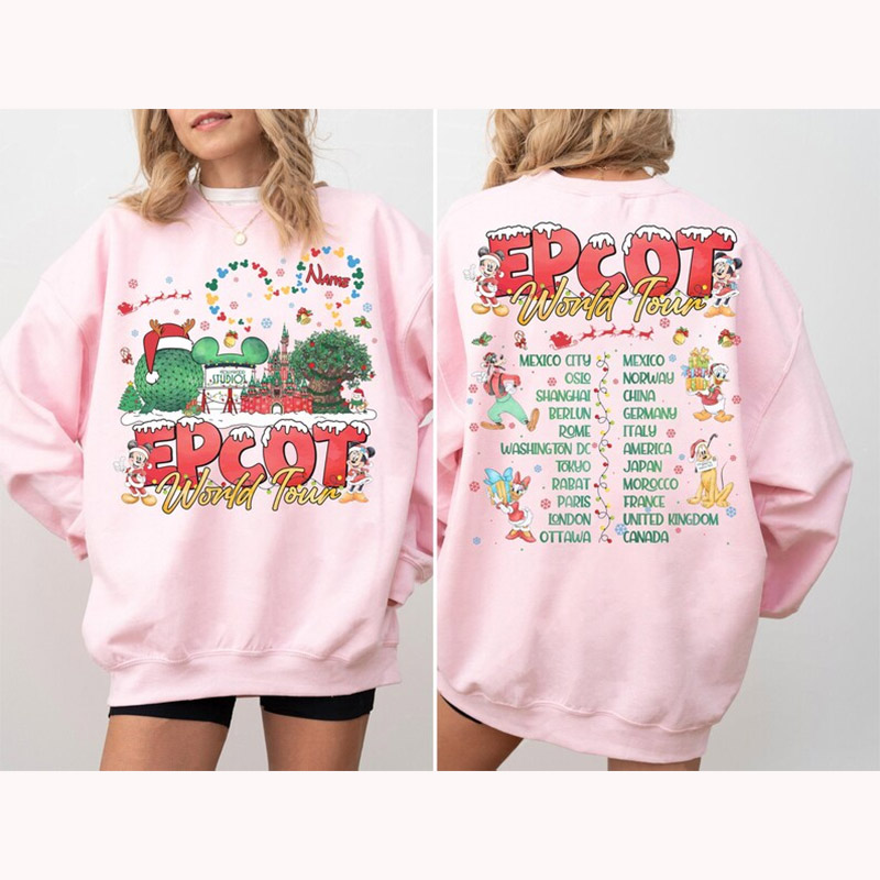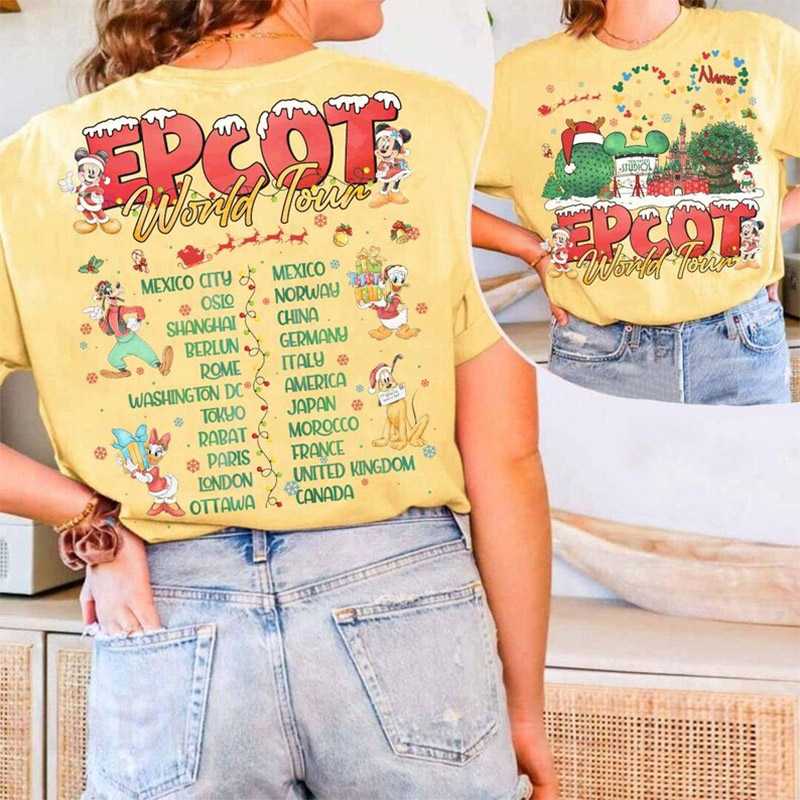 And here’s the best part: Every Personalized Epcot World Tour Christmas Mickey And Friends Comfort Colors Tee you order from us is proudly printed in the USA. That means you’re not only supporting local craftsmanship—you’re getting unrivaled quality, bold graphic designs, and sustainably sourced style delivered straight to your door.