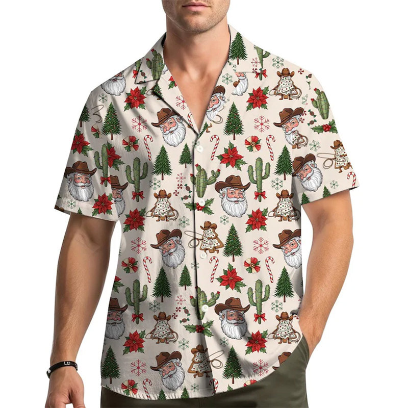 Make Every Day Feel Like a Vacation with Our Bold, USA-Printed Cowboy Santa Christmas Western Hawaiian Shirt