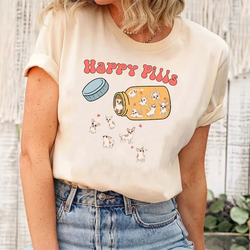 Cute Dogs Chihuahua Happy Pills Shirt