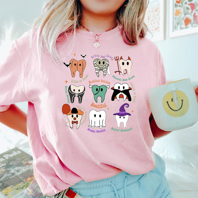 Looking for the perfect blend of comfort, color, and self-expression? Welcome to the next level of wardrobe essentials: Cute Halloween Tooth Dental Hygienist Halloween Comfort Colors Tee from PersonalizedShirts.net — where your T-shirt isn’t just a piece of fabric, but a canvas for identity.