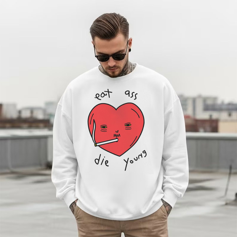 Explore our selection of Eat Ass Die Young, Gen Z Meme Shirt designs that are making waves right now. From vintage-inspired graphics to edgy, statement-making quotes, these shirts are not just fashionable — they’re conversation starters. Check out our latest releases and find the perfect shirt that reflects your unique personality and sense of style.