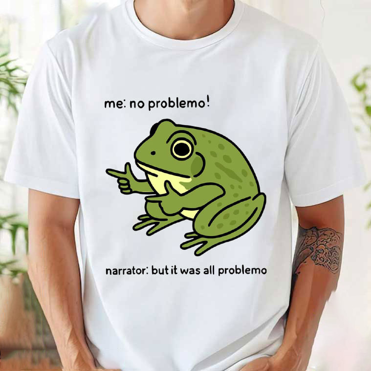 Explore our Funny Frog Me No Problemo Narrator But It Was All Problemo Meme Shirt designs that are making waves right now. From vintage-inspired graphics to edgy, statement-making quotes, these shirts are not just fashionable — they’re conversation starters. Check out our latest releases and find the perfect shirt that reflects your unique personality and sense of style.