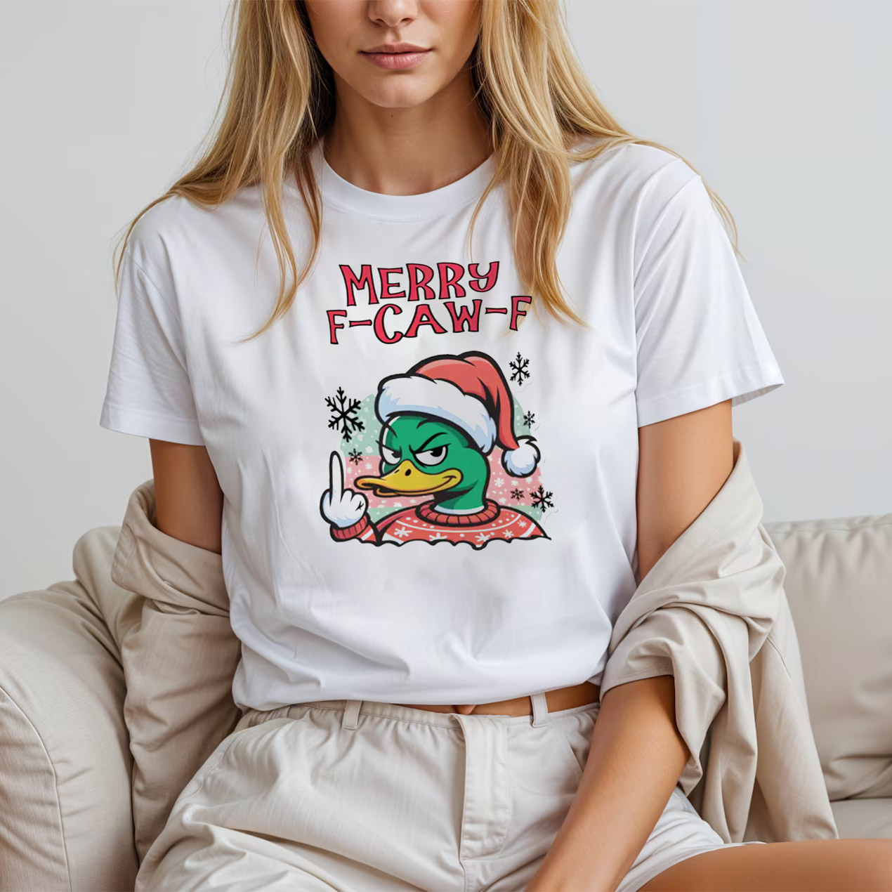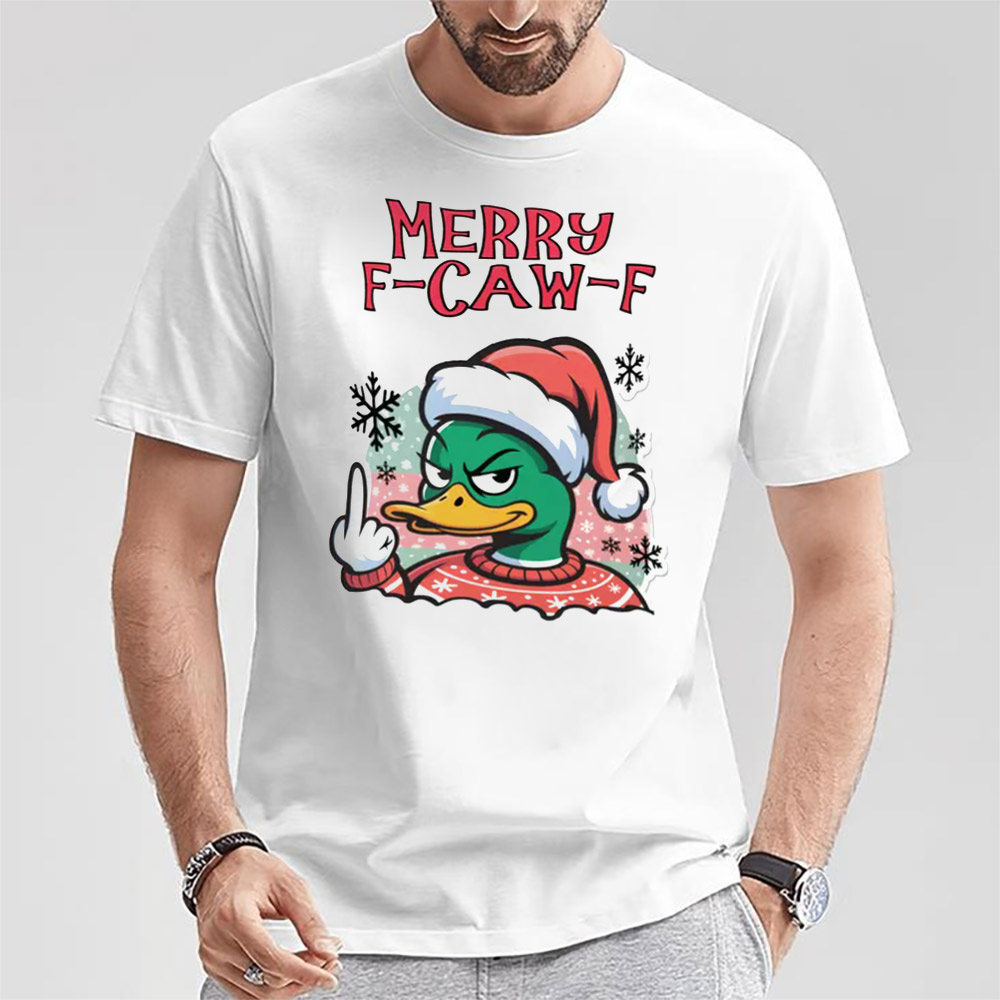 Explore our selection of Funny Grumpy Duck Merry F-CAw-F Tee designs that are making waves right now. From vintage-inspired graphics to edgy, statement-making quotes, these shirts are not just fashionable — they’re conversation starters. Check out our latest releases and find the perfect shirt that reflects your unique personality and sense of style.