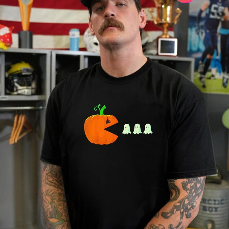 Explore our selection of Ghost Eating Pumpkin Cool Spooky Halloween T-shirt designs that are making waves right now. From vintage-inspired graphics to edgy, statement-making quotes, these shirts are not just fashionable — they’re conversation starters. Check out our latest releases and find the perfect shirt that reflects your unique personality and sense of style.