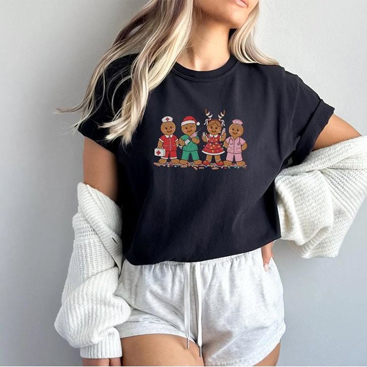 T-shirts are blank slates. Want to celebrate Hanukkah, Kwanzaa, or simply spread winter vibes? Our Gingerbread Nurse Christmas Cookie Shirt allow you to highlight your culture, sense of humor, or favorite holiday movie quote.