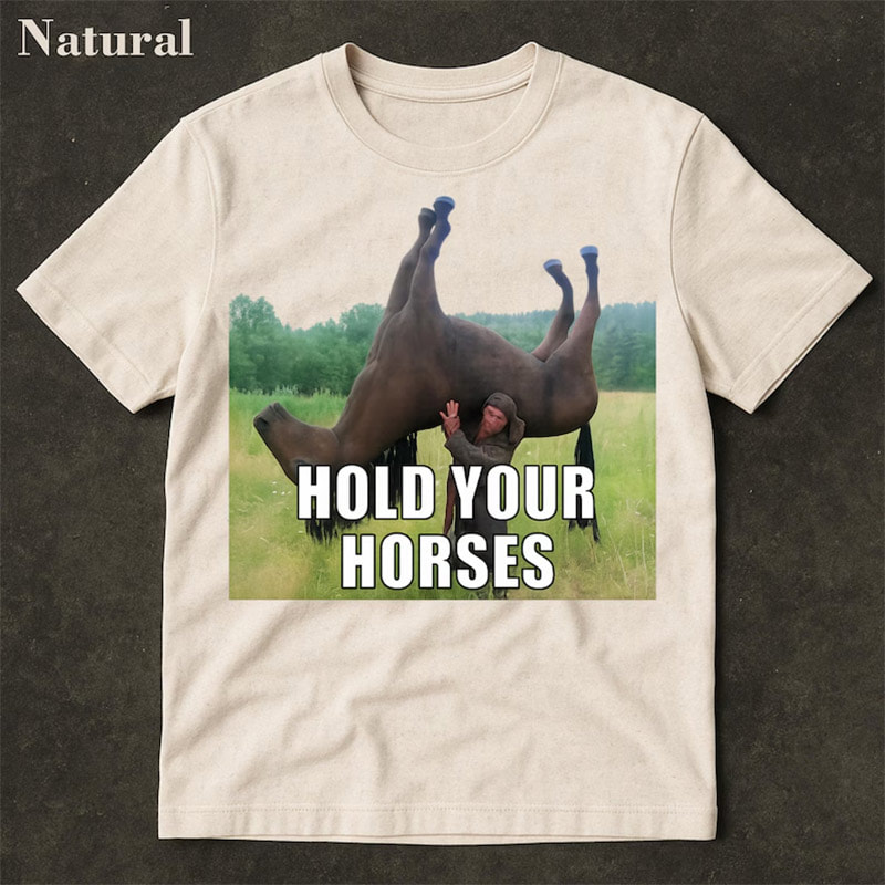 Looking for the perfect blend of comfort, color, and self-expression? Welcome to the next level of wardrobe essentials: Hold Your Horses Ironic Weird Meme Comfort Colors Shirt from PersonalizedShirts.net — where your T-shirt isn’t just a piece of fabric, but a canvas for identity.