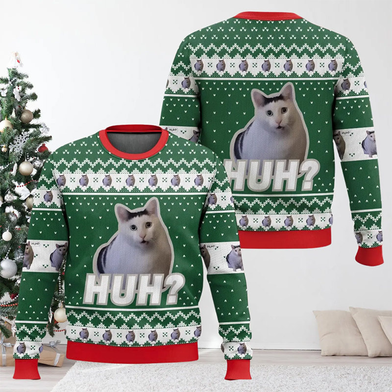 You won’t just wear a Huh Cat Meme Funniest Ugly Christmas Sweater—you’ll own the room.