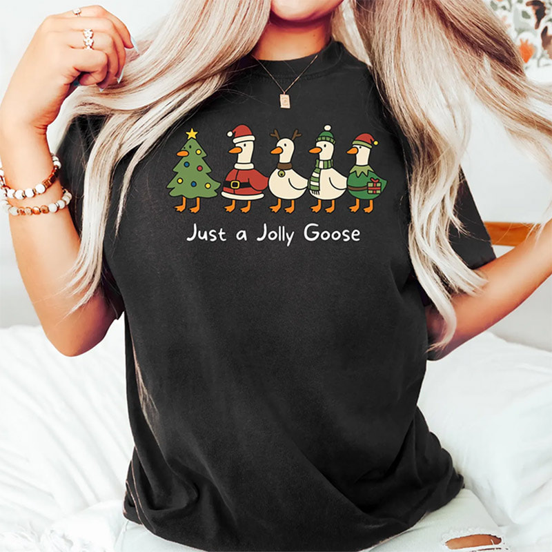 The secret behind a Just A Jolly Goose Cute Duck Christmas Shirt is simple: it captures the moment. It’s about being part of something bigger, whether it’s a pop culture reference, a viral meme, or a bold graphic that speaks to a shared experience.