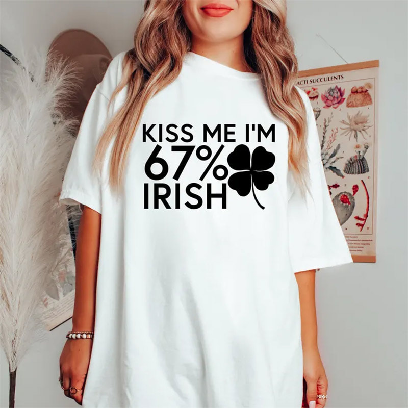The Kiss Me I’m 67% Irish, St Patricks Day 67 Meme T-shirt brings festive Irish spirit to parades, parties, and everyday fun. Crafted from soft, breathable fabric, it offers a comfortable classic fit. Featuring shamrock-inspired graphics and vibrant printing, this tee delivers durable quality and seasonal style perfect for celebrating Saint Patrick’s Day.
