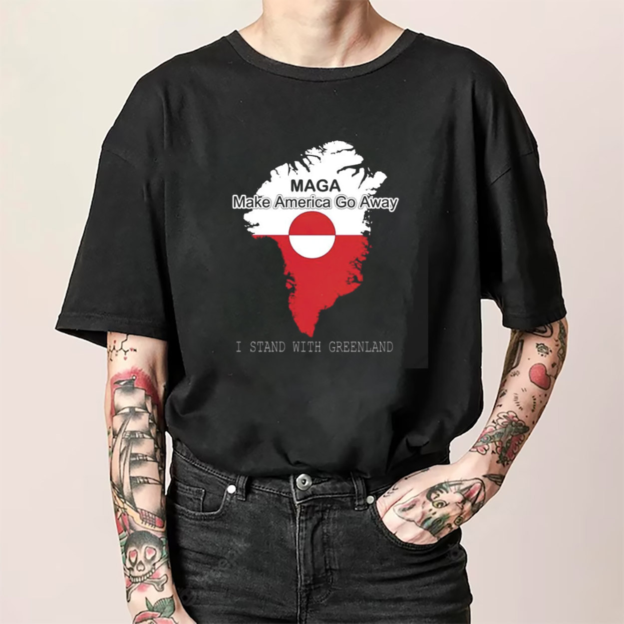 Make a bold, conversation-starting statement with the Make America Go Away Support Greenland Shirt, designed for fans of satire, political humor, and eye-catching commentary fashion. Made from soft, breathable fabric, this shirt features a striking graphic concept that plays on geopolitical ideas in a creative, tongue-in-cheek way.
