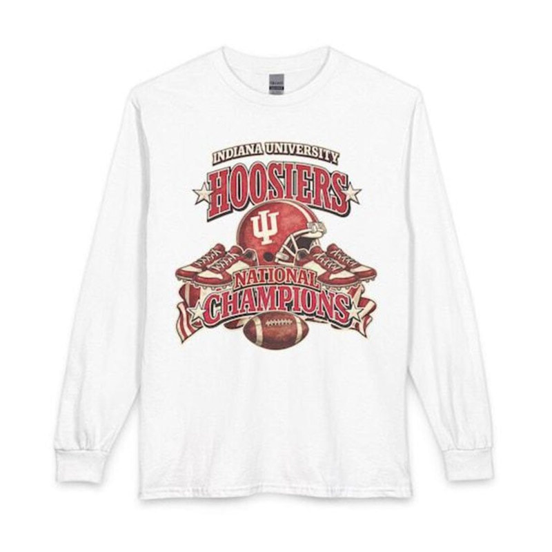 The National Champions Indiana Hoosiers University Retro Football Shirt celebrates a historic victory with bold collegiate style. Made from soft, breathable fabric, it offers a comfortable unisex fit for everyday wear. Perfect for game days, alumni events, or collectors, this shirt features high-quality, durable printing that proudly showcases Indiana Hoosiers championship spirit.