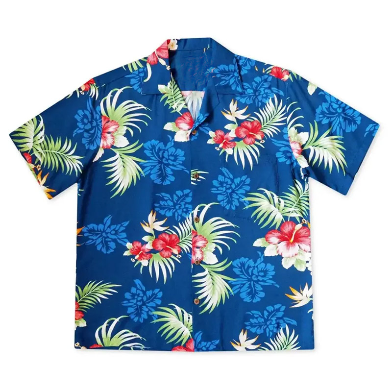 Make Every Day Feel Like a Vacation with Our Bold, USA-Printed Pasion Navy Blue Hahawaiian Shirt