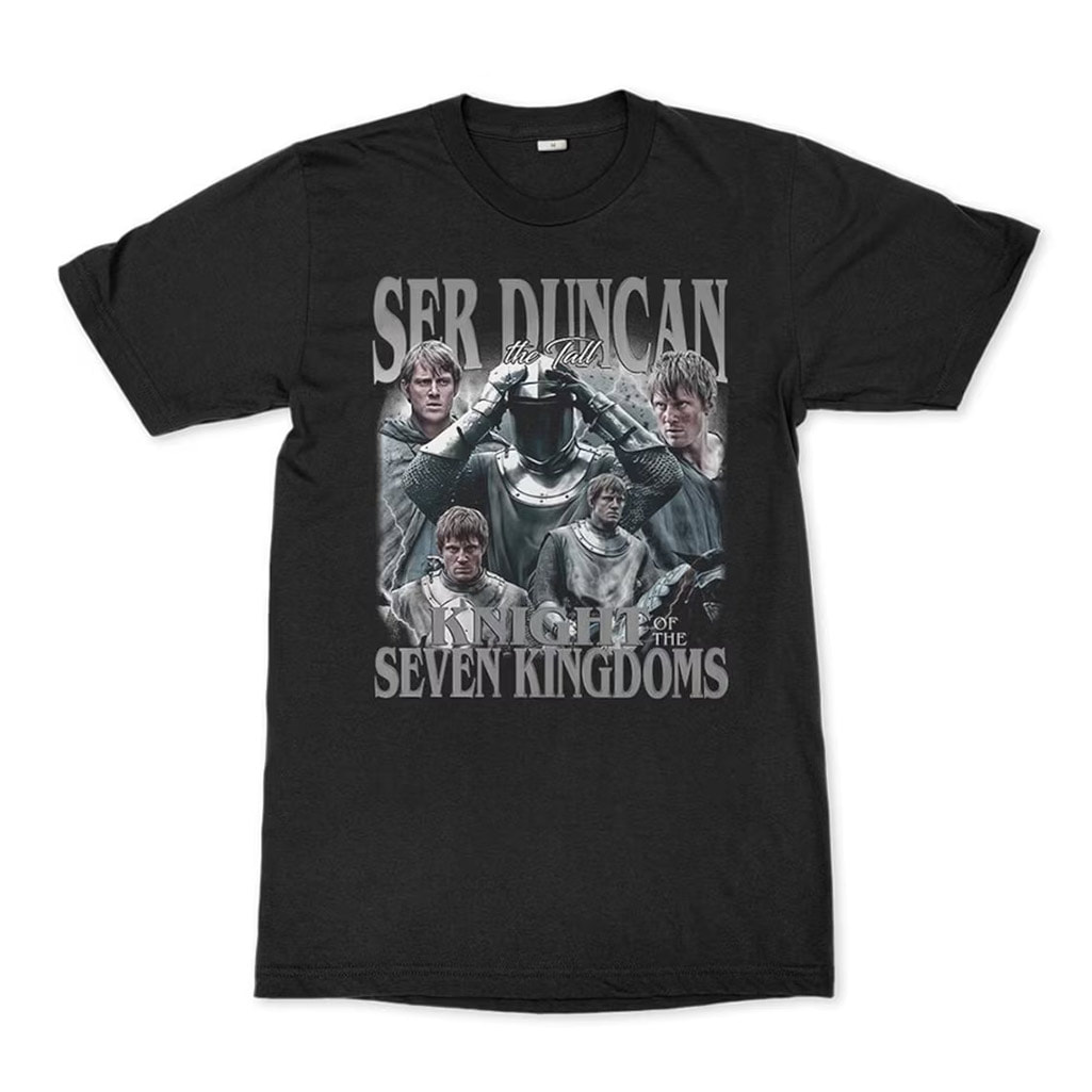 The Ser Duncan The Tall, A Knight Of The Seven Kingdoms Movie Tee celebrates epic fantasy, chivalry, and Westerosi adventure. Made from soft, breathable fabric, it offers a comfortable classic fit for everyday wear. Perfect for fantasy fans and collectors, this tee features medieval-inspired graphics with durable, high-quality printing.