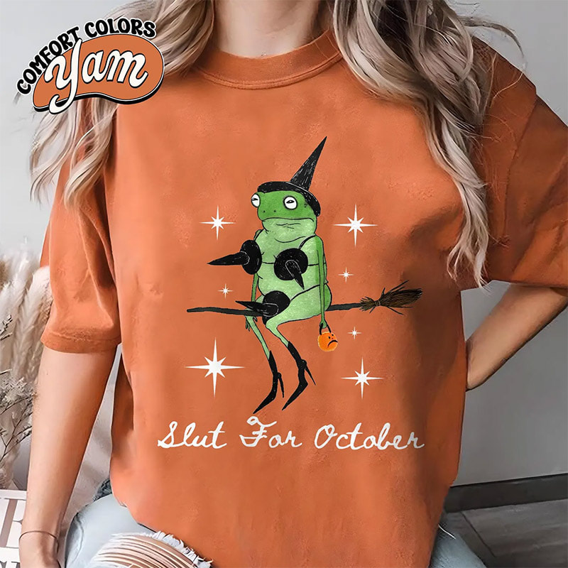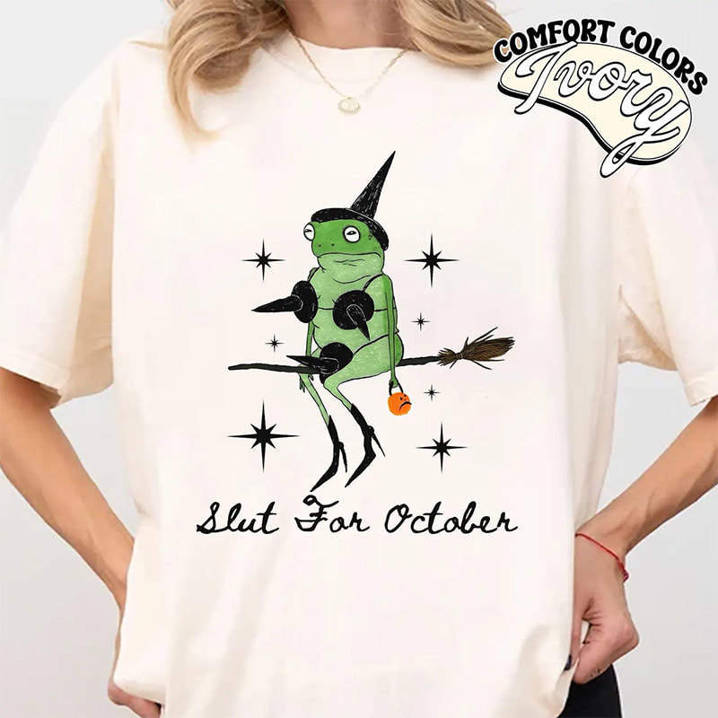 Looking for the perfect blend of comfort, color, and self-expression? Welcome to the next level of wardrobe essentials: Slut For October Funny Meme Frog Comfort Colors Shirt from PersonalizedShirts.net — where your T-shirt isn’t just a piece of fabric, but a canvas for identity.