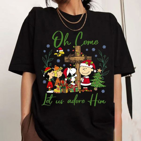 Oh Come Let Us Adore Him Snoopy Peanuts Friends Christmas Shirt