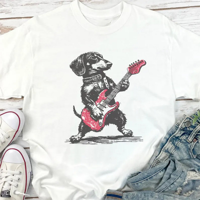 Explore our selection of Wiener Dog Plays Guitar, Dog Rocker Tee designs that are making waves right now. From vintage-inspired graphics to edgy, statement-making quotes, these shirts are not just fashionable — they’re conversation starters. Check out our latest releases and find the perfect shirt that reflects your unique personality and sense of style.